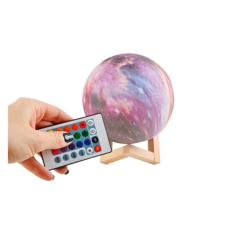 Noční lampička je kombinací moderní 3D technologie a jedinečného designu. Realistická textura povrchu věrně kopíruje krátery a struktury přirozeného satelitu Země a vytváří tak jedinečnou atmosféru. Lampka svítí v 16 barvách, má 4 úrovně jasu a režimy změny barev, které lze ovládat pomocí dálkového ovladače nebo dotykem. Vyrobeno z ekologického materiálu PLA, bezpečné pro děti, ideální do ložnice, obývacího pokoje nebo dětského pokoje.