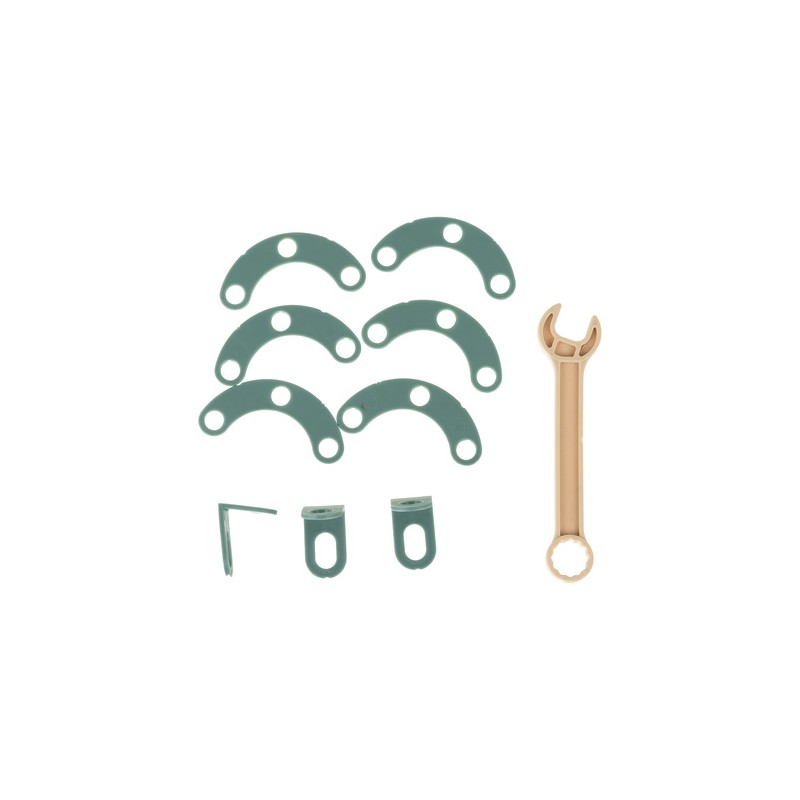 Stavebnice má bezpečné, zaoblené tvary a je v souladu s evropskými normami, což podporuje bezpečnou hru menších dětí. Před prvním použitím se seznamte s informacemi na obalu a dodržujte pravidla bezpečné hry odpovídající věku dítěte. Při manipulaci s drobnými díly a nástroji se doporučuje dohled dospělé osoby.