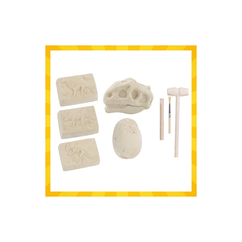 Sada Vykopávky dinosaurů 5v1 je edukativní „fosilní“ set, ve kterém děti pomocí kladívka, dlátka a štětečku odhalují kostry 5 druhů dinosaurů ukrytých ve 3 sádrových blocích, vejci a lebce. Netoxické, certifikované materiály v souladu s evropskou normou a dlouhá doba hry dělají z této sady skvělý dárek pro malé objevitele.