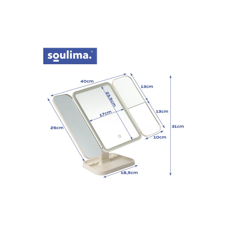 Tohle zrcátko přináší komfort, který u běžného zrcadla chybí: tříčástá rozkládací konstrukce se středovým zrcadlem a dvěma bočními křídly umožní vidět obličej i účes z více úhlů. Vestavěné LED osvětlení s nastavitelnou barvou světla usnadní líčení i péči o pleť i v tmavším prostoru, zatímco zvětšení 2x a 3x pomůže doladit detaily. Dotykové ovládání, otočení až o 270° a nastavitelný náklon dovolí nastavit zrcadlo přesně tak, jak ti to vyhovuje. Po složení působí jako stylové pouzdro, které chrání plochy při uložení nebo přenášení.