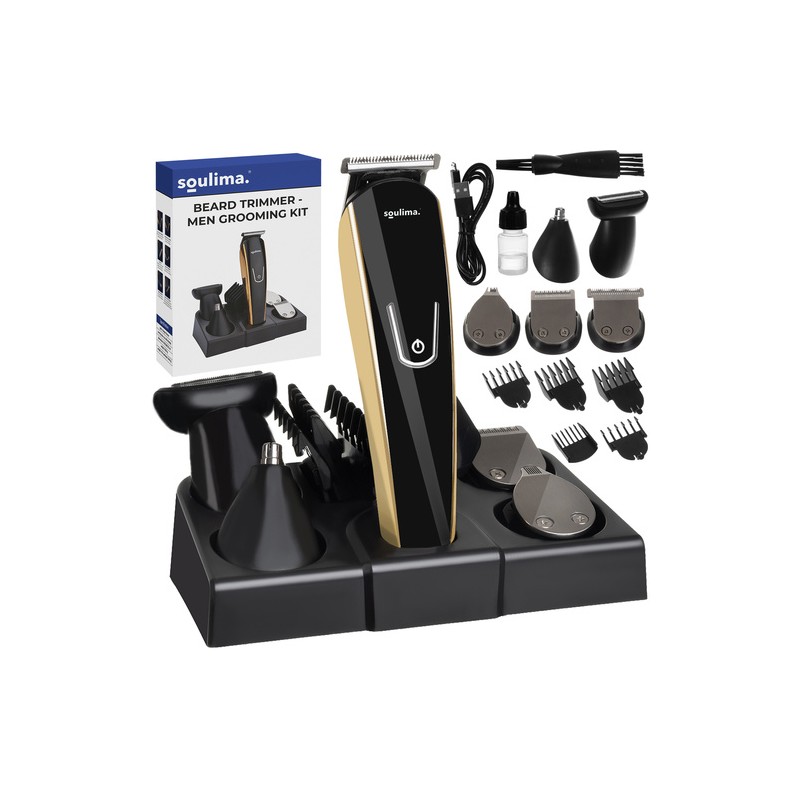 Jeden přístroj pro kompletní úpravu: vlasy, vousy, knír, obočí i zastřihování nosu a uší. Díky nástavcům a vodicím hřebenům snadno zvolíš délku střihu a upravíš vousy podle svého. Součástí balení je také stojánek, nabíjecí kabel, čisticí kartáček a olej pro údržbu, takže máš vše potřebné po ruce. Po plném nabití zvládne až 60 minut provozu, což je praktické pro střih i doladění detailů bez spěchu. Skvělé řešení, pokud chceš mít úpravu pod kontrolou a omezit návštěvy a čekání.