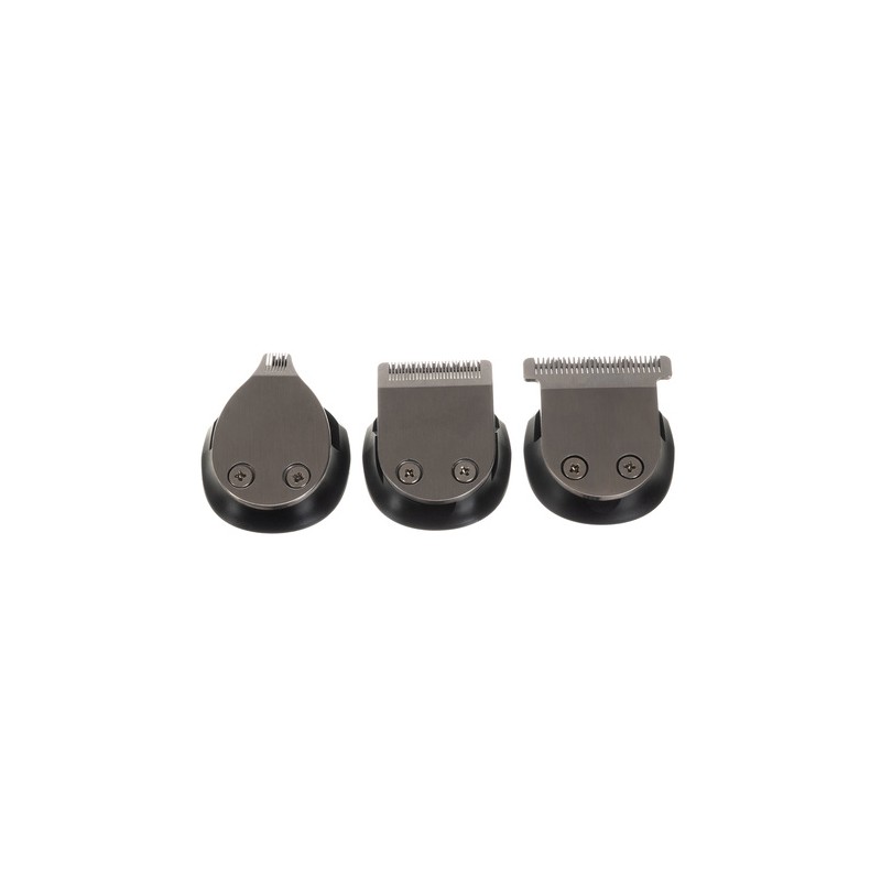 Nástavec na vlasy, nástavec na vousy, nástavec na knír, zastřihovač nosu a uší, holicí nástavec, 5 vodicích hřebenů, stojánek, nabíjecí kabel, čisticí kartáček, olej a krabičku s návodem.