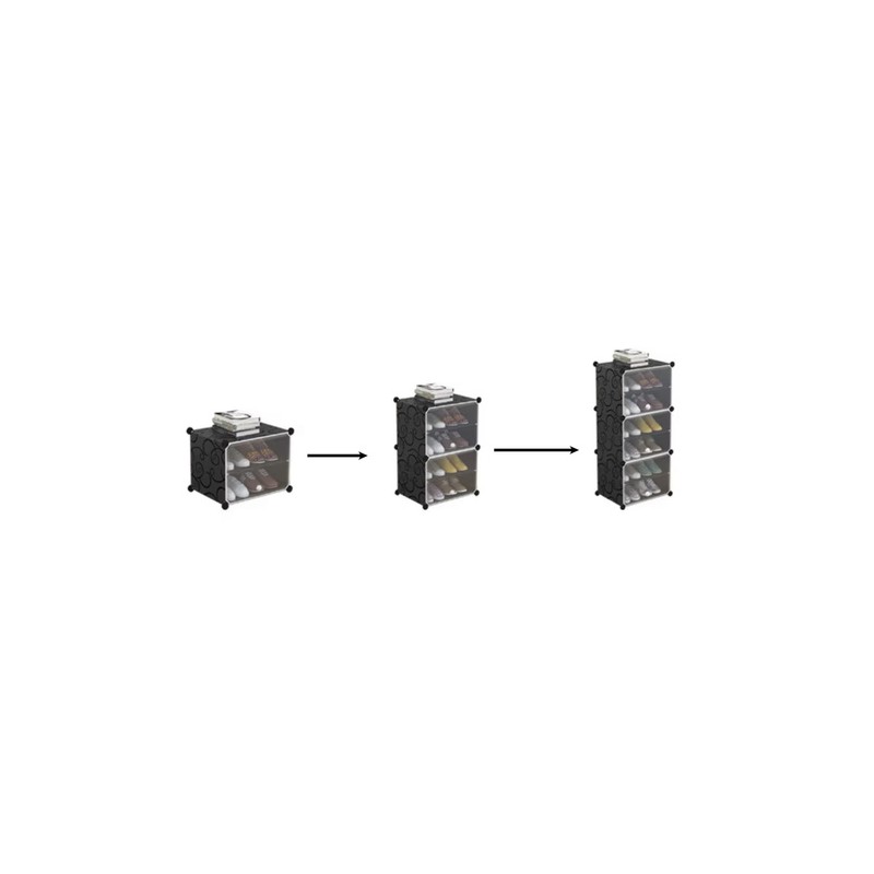 Praktická volba pro každého, kdo chce mít boty uklizené a zároveň na ně pohodlně dosáhnout. Modulární konstrukce umožňuje přizpůsobit uspořádání skříňky dostupnému prostoru i počtu a velikosti bot. Pokud potřebuješ více úložného místa, lze spojit několik sad a vytvořit tak řešení, které bude sedět celé domácnosti. Díky 6 policím získáš velkorysý prostor, klidně i pro 12 párů bot, přitom skříňka zůstává kompaktní a nepůsobí těžkopádně. Otevírací dvířka pomáhají chránit obuv před prachem a udržují prostor estetický, průhledné provedení navíc umožní rychle vidět obsah a najít správný pár bez zbytečného otevírání každého dílu. Montáž je jednoduchá a intuitivní, bez potřeby speciálního nářadí, a přiložené dřevěné kladívko ji ještě usnadní. Součástí balení je i věšák, který pomůže mít bundy, šály a čepice na jednom místě a v pořádku.
