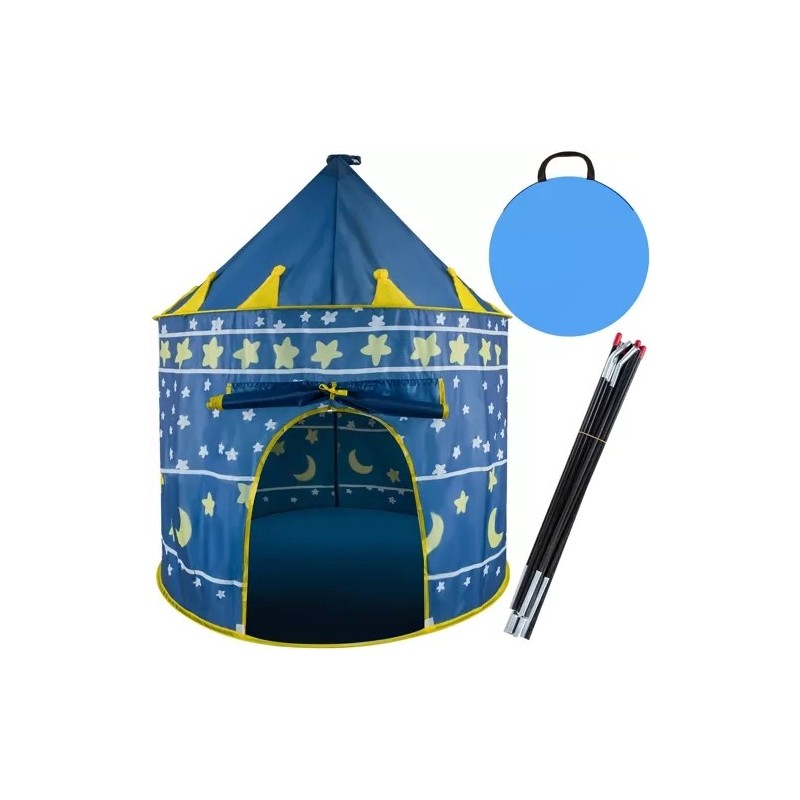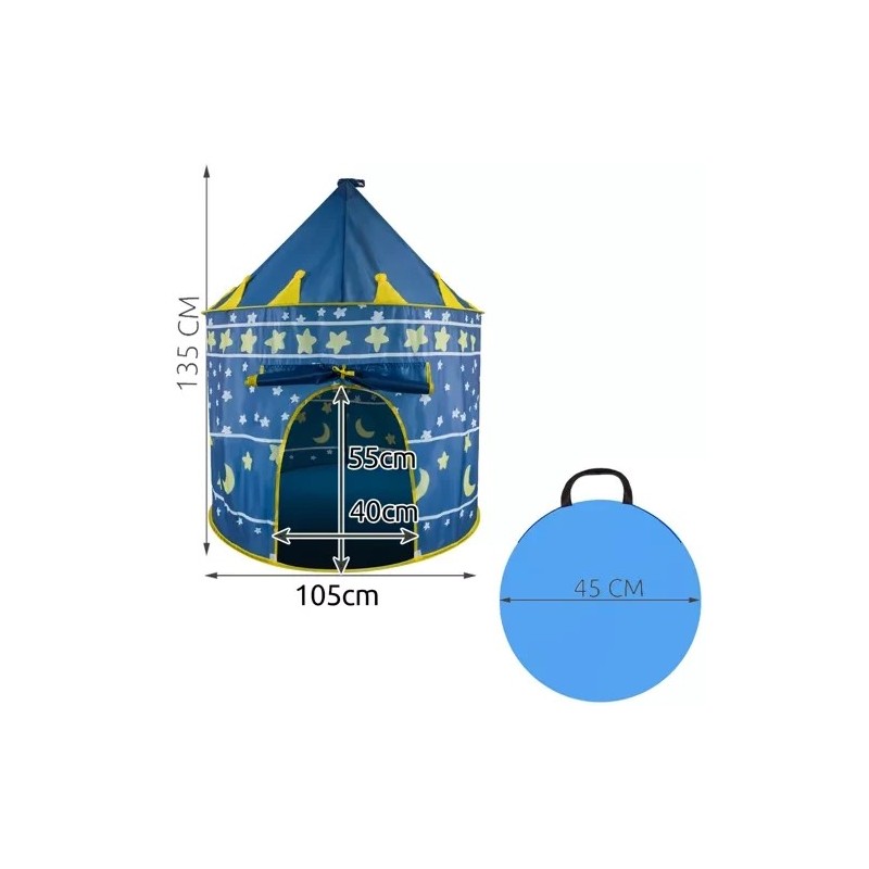 Kráľovský stan ve tvaru paláce pro děti do bytu i na zahradu - bezpečný prostor pro kreativní hru, úschovu hraček a kouzelnou atmosféru v dětském pokoji. Rychle se rozkládá, má síťovaná okénka a vstup na suchý zip.