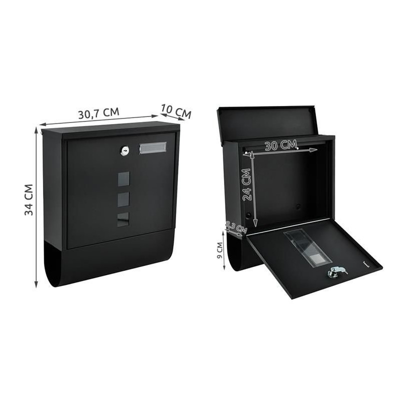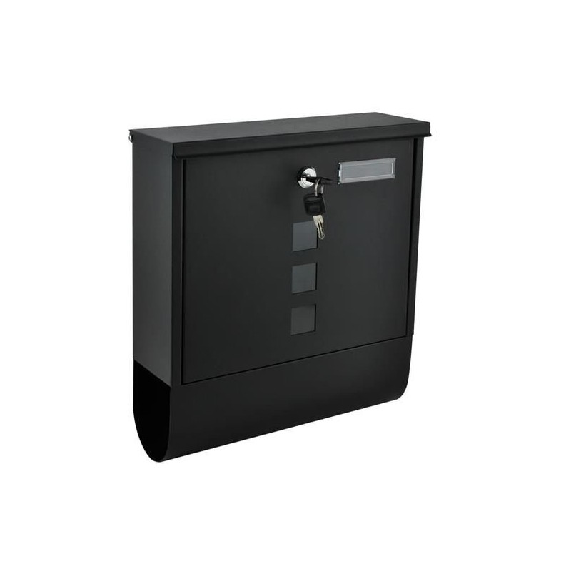 Černá poštovní schránka na formát A4 se zakrytým vhozem chrání korespondenci před počasím. Pohodlně pojme dopisy A4 a spodní tuba je ideální na noviny a letáky. V balení jsou 2 klíče i montážní sada.