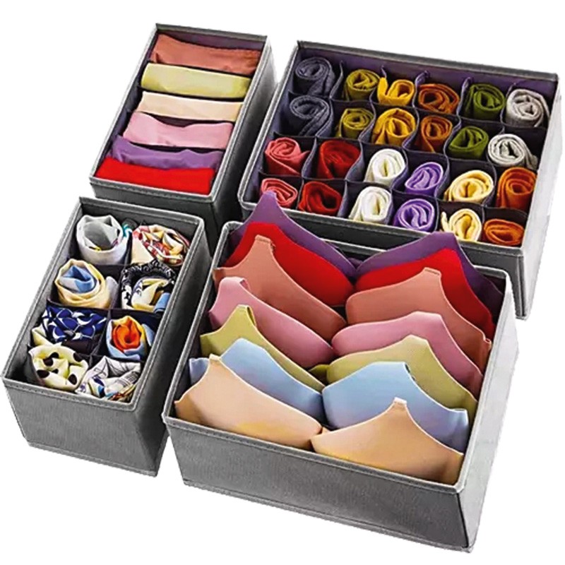 Tato sada čtyř organizérů je spolehlivým způsobem, jak nastolit řád v zásuvkách a skříňkách. Už žádné hledání drobného oblečení naslepo - nyní má každá věc své vyhrazené místo. Získáte tak mnohem rychlejší přístup k ponožkám, podprsenkám, kalhotkám nebo kravatám. Sestavení je velmi snadné a nevyžaduje žádnou montáž, takže jsou ihned připraveny k použití. Pokud organizéry zrovna nepotřebujete, díky skládací konstrukci je snadno uskladníte.