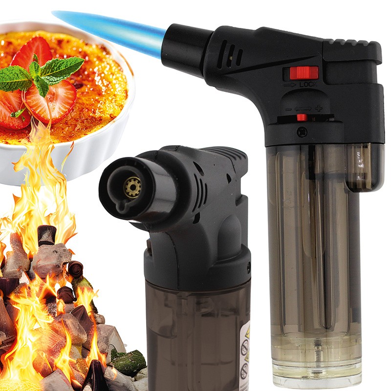 Velký plynový zapalovač s tryskovým plamenem nabízí rychlé zapálení jedním kliknutím, silný plamen a možnost opakovaného plnění.