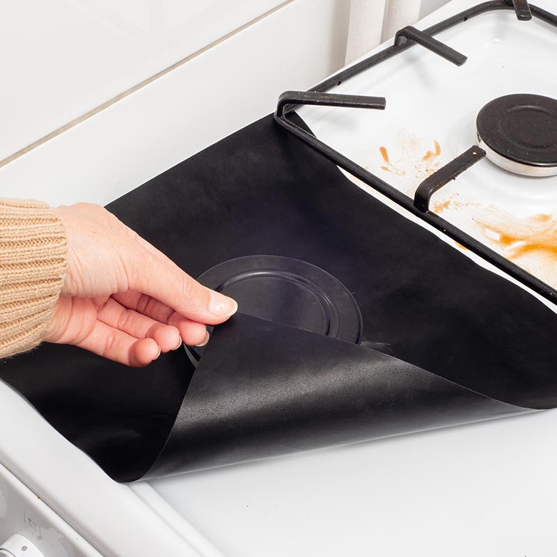 Ochranná podložka na plynový sporák z textilie z vláken s teflonovým povrchem, 27 x 27 cm – chrání sporák před znečištěním a připáleninami a usnadňuje udržování čistoty.