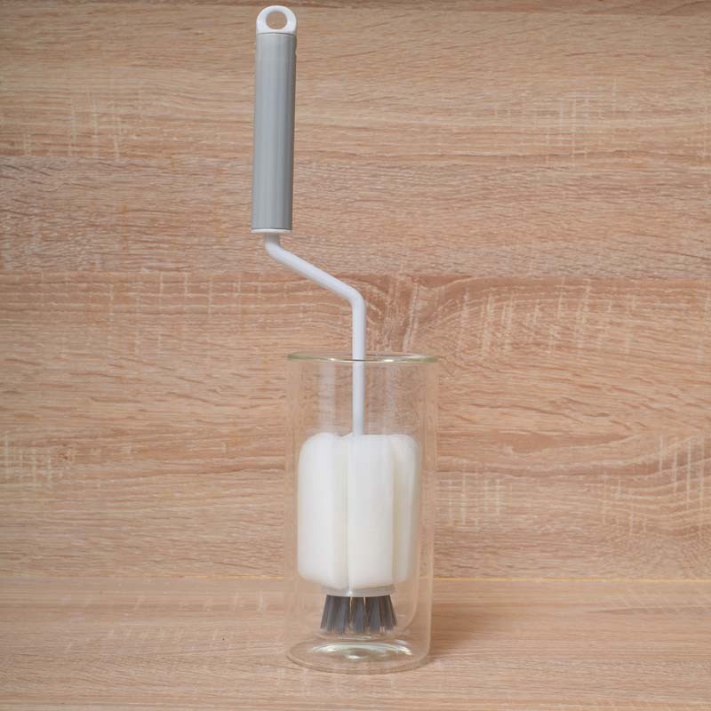 Dvě čisticí plochy: kartáč na mytí dna a houba na mytí stěn.