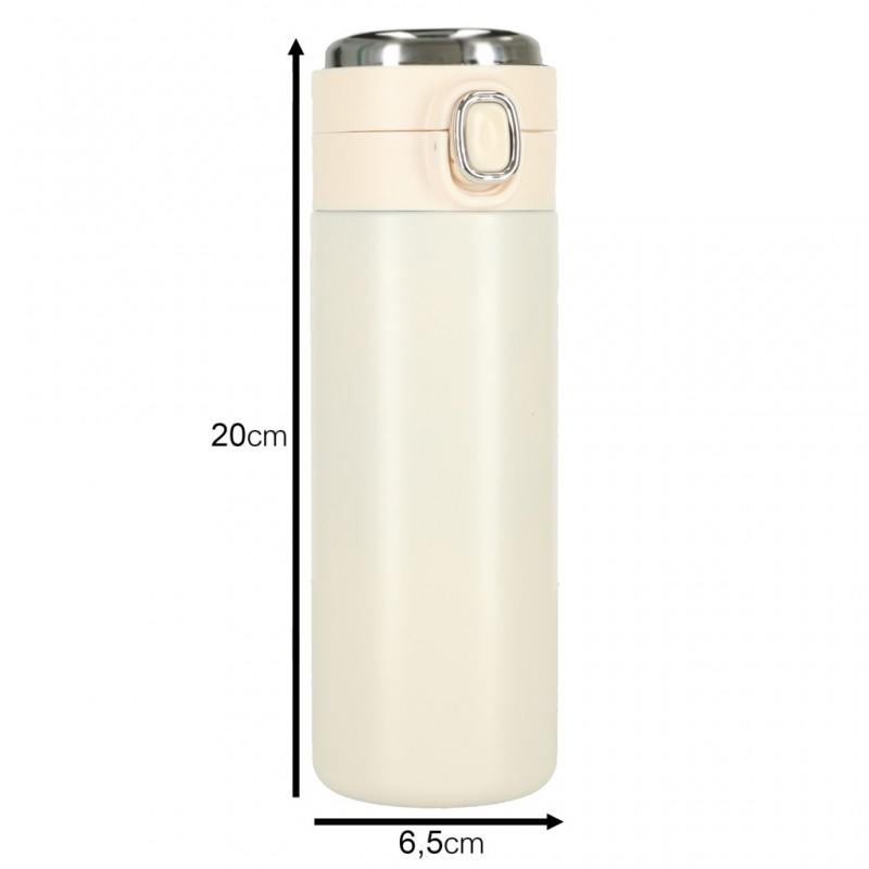 Tento béžový termální hrnek s náustkem a LED displejem, navržený s ohledem na pohodlí a eleganci, je ideálním společníkem na každodenní cesty. Udržuje teplotu nápoje po mnoho hodin a inteligentní displej ukazuje, jak horká je vaše káva - bez rizika popálení.