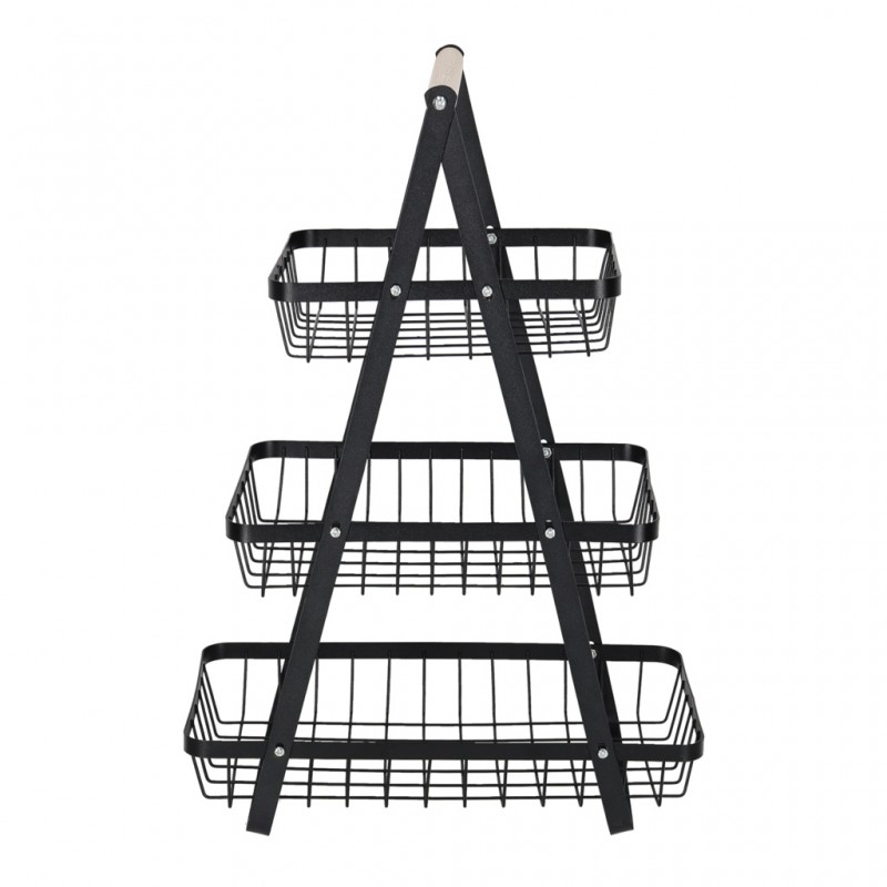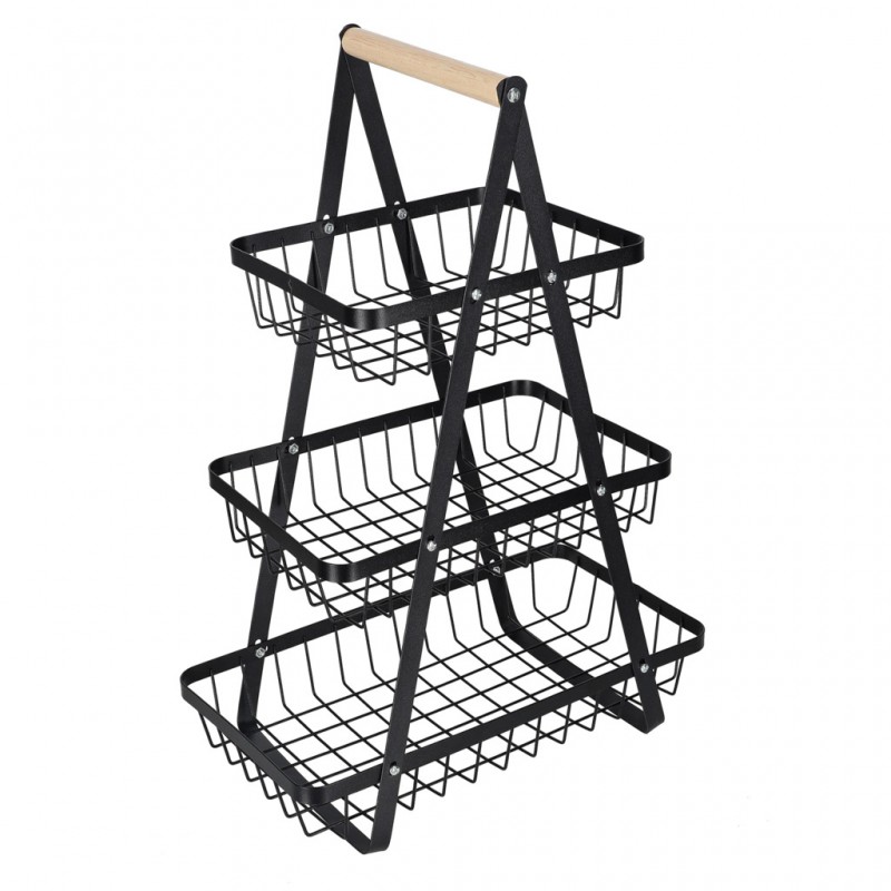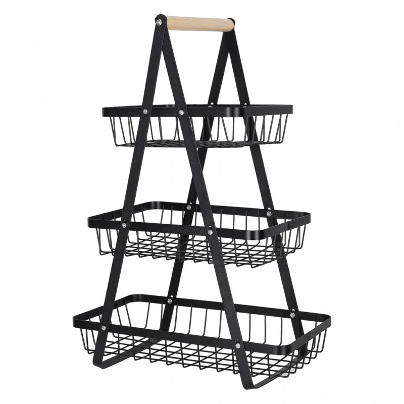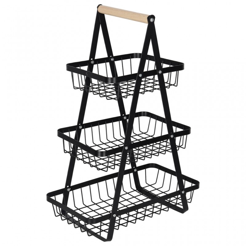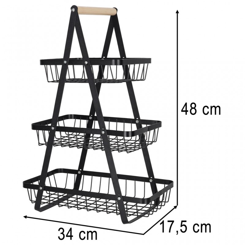 Stylový a praktický - třípatrový koš na ovoce kombinuje moderní design s funkčností. Je vyroben z kovu a dřeva a skvěle vypadá v kuchyni, jídelně nebo obývacím pokoji. Usnadňuje organizaci prostoru a vystavené ovoce láká k ochutnání.