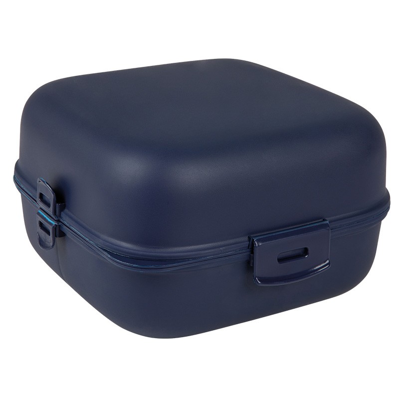 Funkční svačinová dóza se dvěma vnitřními víky a rozdělením na několik přihrádek.