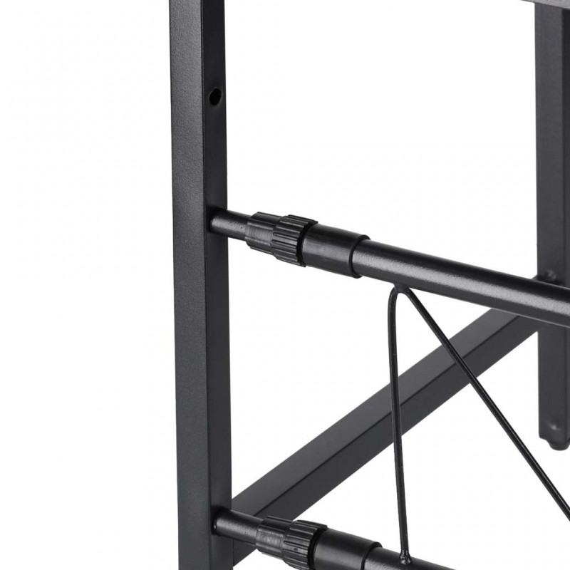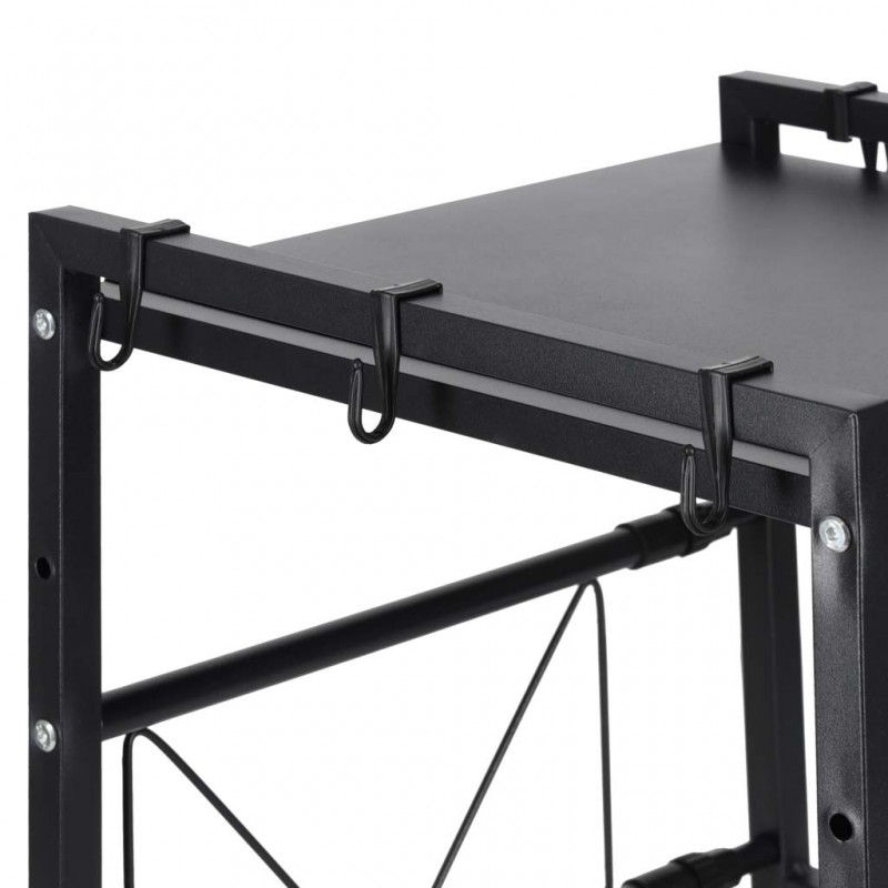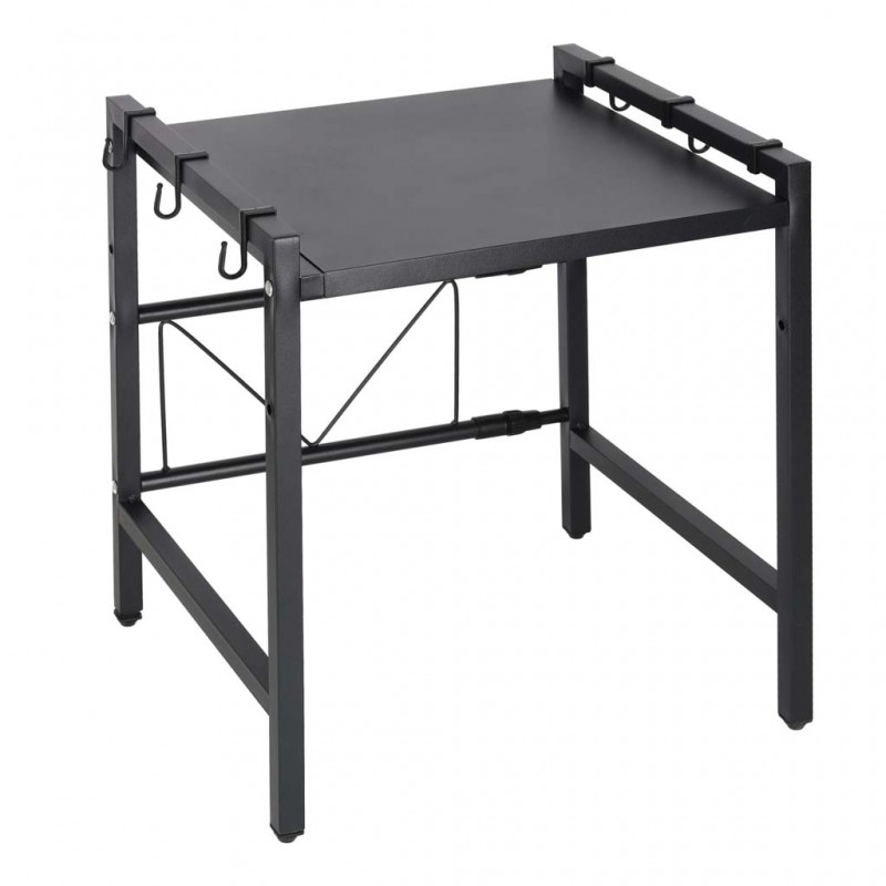 Stabilní a odolná konstrukce poskytuje jistou oporu pro spotřebiče umístěné na polici při správném sestavení podle návodu. Možnost nastavení výšky a šířky pomáhá přizpůsobit organizér rozměrům desky a přístrojů a vytváří pohodlné a přehledné pracovní místo. Před montáží a používáním se doporučuje seznámit se s návodem k montáži a informacemi uvedenými u produktu.