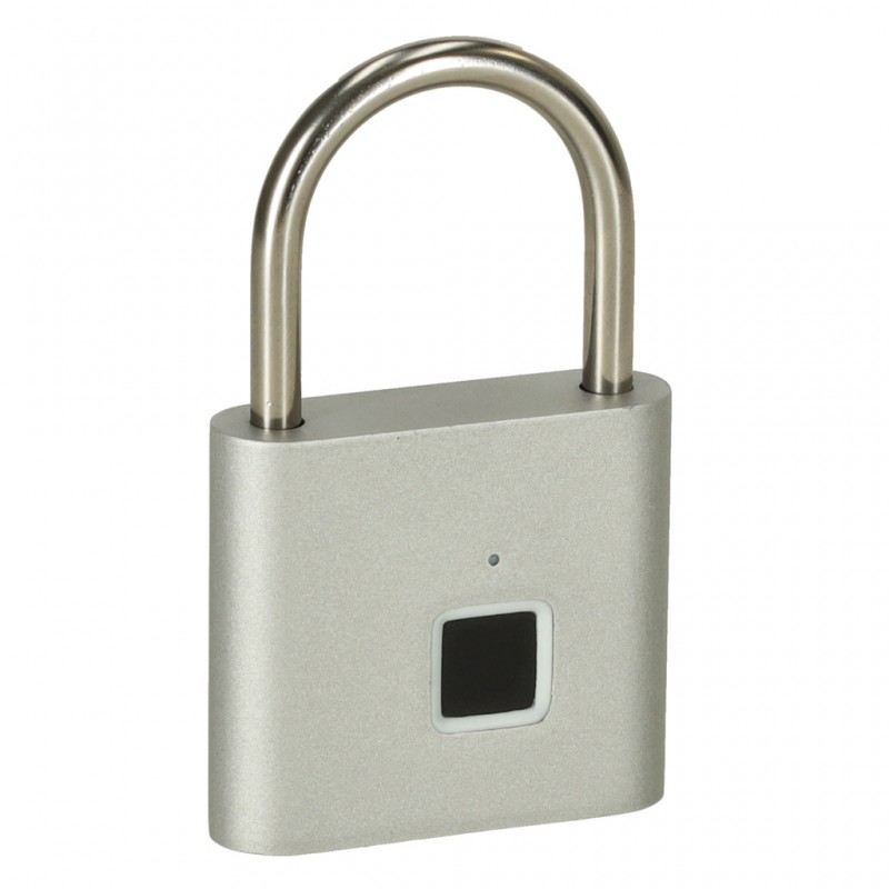 Elektronický visací zámek na otisk prstu s pamětí až na 10 otisků, voděodolností IP56 a vestavěným akumulátorem 3,7 V - pro zavazadla, skříňky, sklep nebo branku.