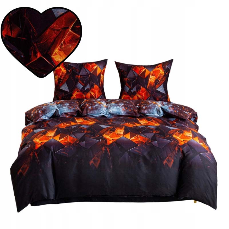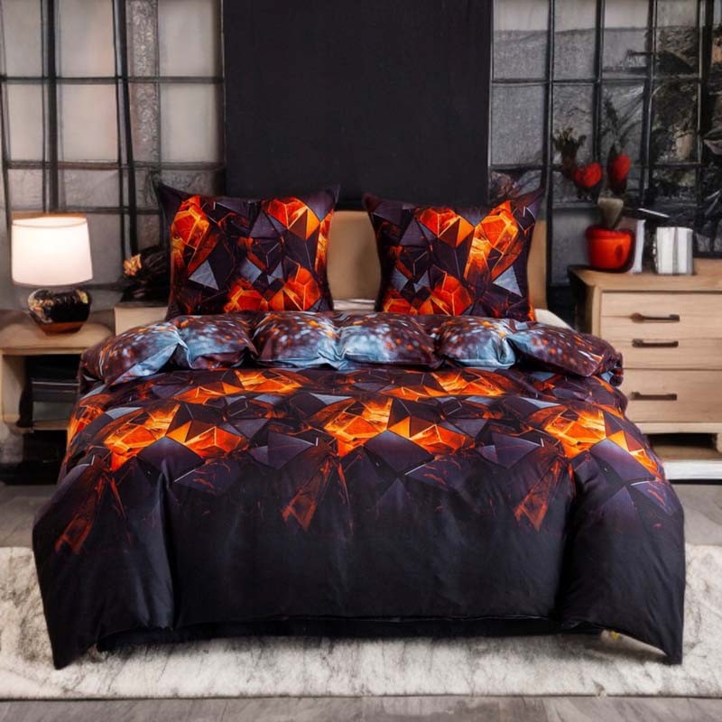 Třídílná sada ložního povlečení z bavlněného saténu se vzorem Ohnivé krystaly spojuje jemnost, pohodlí při spánku a výrazný moderní styl. Skvělá volba i jako dárek.