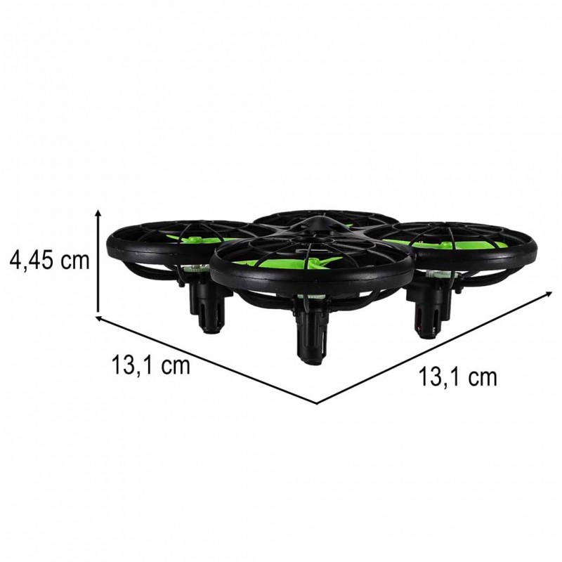 Dron je obklopen 4 senzory, které slouží k detekci překážek. Napájen je akumulátorem 3,7 V 380 mAh Li-poly nabíjeným pomocí přiloženého kabelu. Ovládání zajišťuje vysílač 2,4 GHz, který umožňuje stabilní řízení v uvedeném dosahu. Součástí sady je dron, vysílač, 4 náhradní vrtule, kabel pro nabíjení akumulátoru, akumulátor 3,7 V 380 mAh Li-poly a návod k použití, takže po nabití můžete dron používat v souladu s pokyny výrobce.