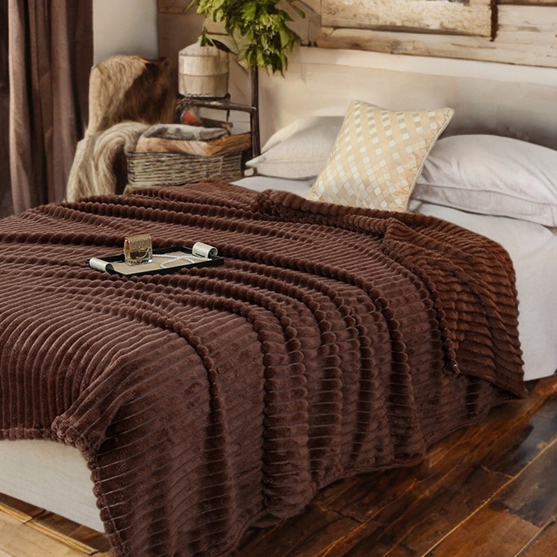 Hnědá deka s 3D proužky 160 x 200 cm přidá domovu teplo, pohodlí a styl - je hebká na dotek, příjemně hřeje a skvěle vypadá na pohovce i jako přehoz na postel.