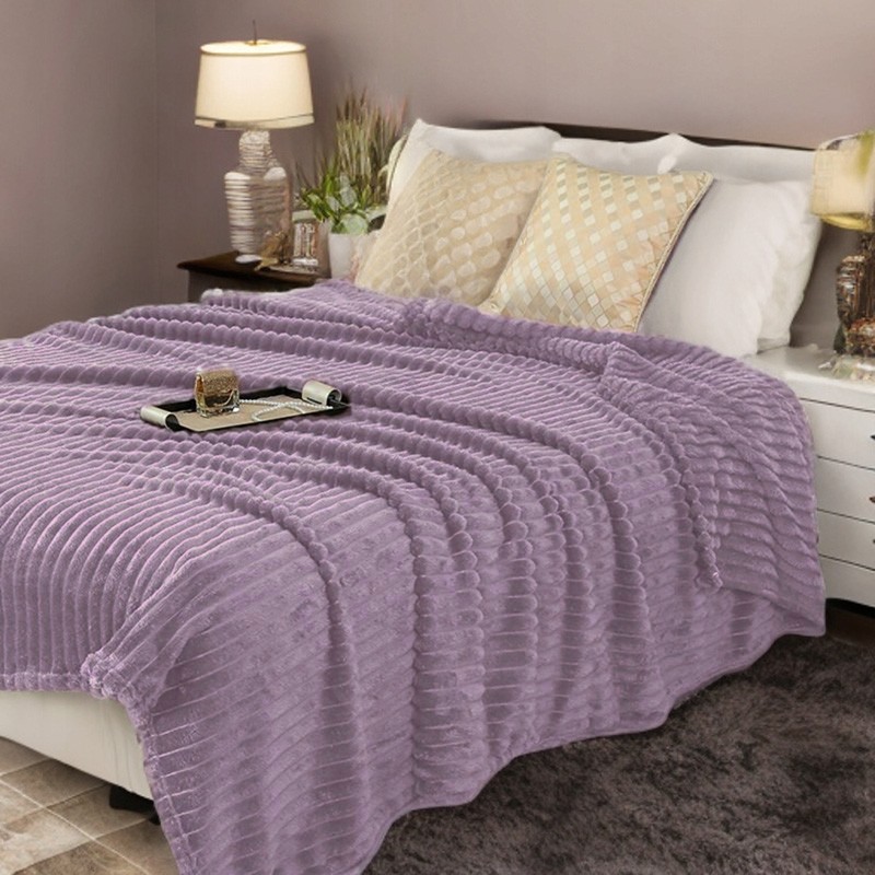 Fialová deka s 3D proužky 160 x 200 cm přidá domovu teplo, pohodlí a styl - je hebká na dotek, příjemně hřeje a skvěle vypadá na pohovce i jako přehoz na postel.
