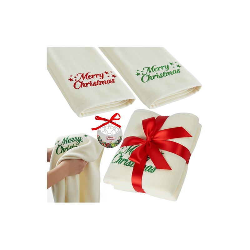 Sada dvou ručníků v barvách Vánoc je kombinací praktičnosti a vánočního stylu. Jsou vyrobeny z měkké, savé bavlny a zdobeny výšivkou s nápisem „Merry Christmas“ - vnesou do koupelny trochu vánoční atmosféry. Ideální jako dárek nebo jako elegantní dekorativní doplněk.
