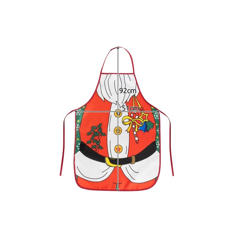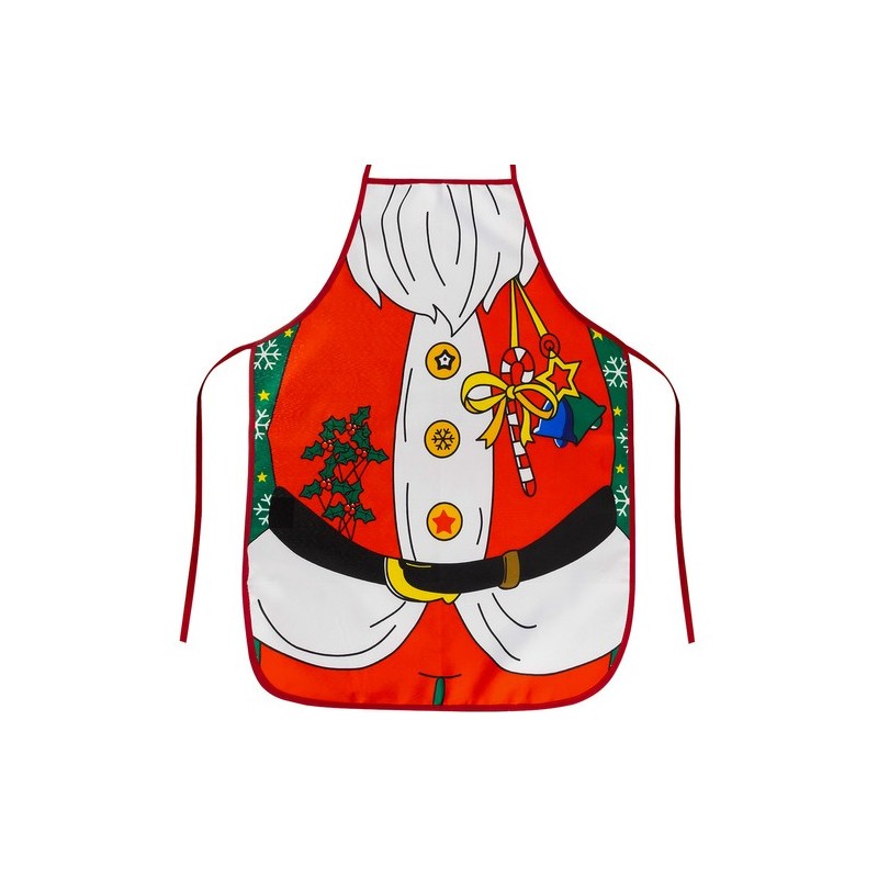 Vánoční kuchyňská zástěra ve stylu kostýmu Santa Clause je kombinací funkčnosti a dobré nálady. Je ideální pro přípravu štědrovečerních pokrmů a vánočního pečiva, chrání oblečení před znečištěním a dodává kuchyni jedinečnou atmosféru. Je vyroben z lehkého, odolného polyesteru - snadno se čistí, nemačká se a zachovává si živé barvy po mnoho let.
