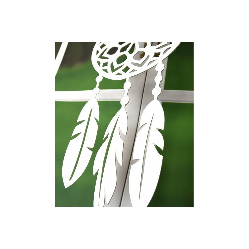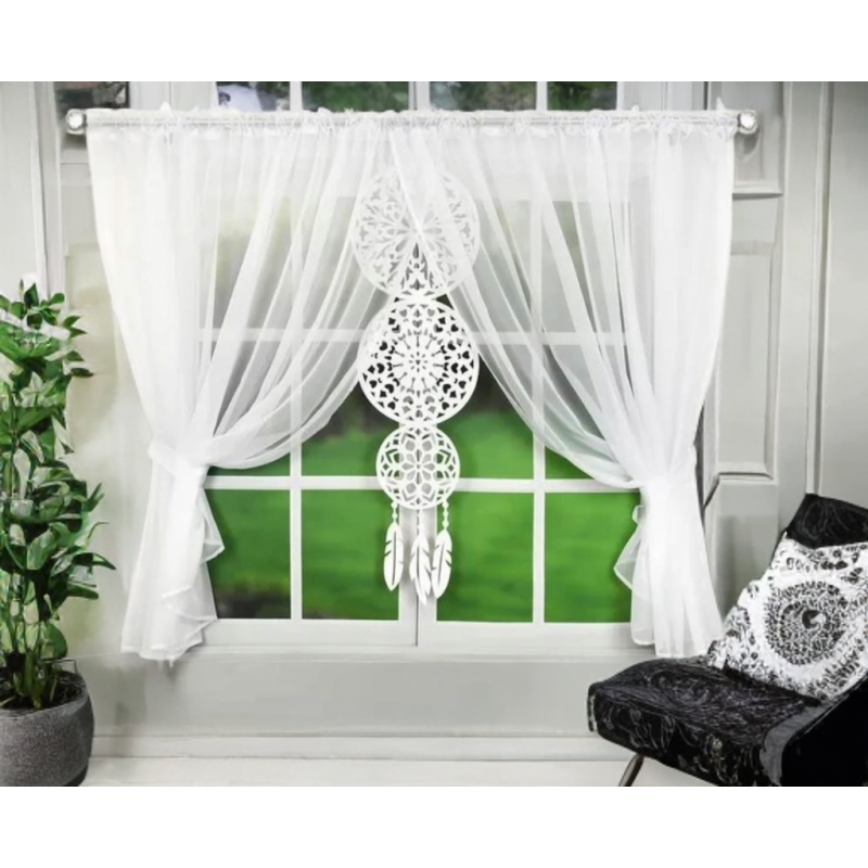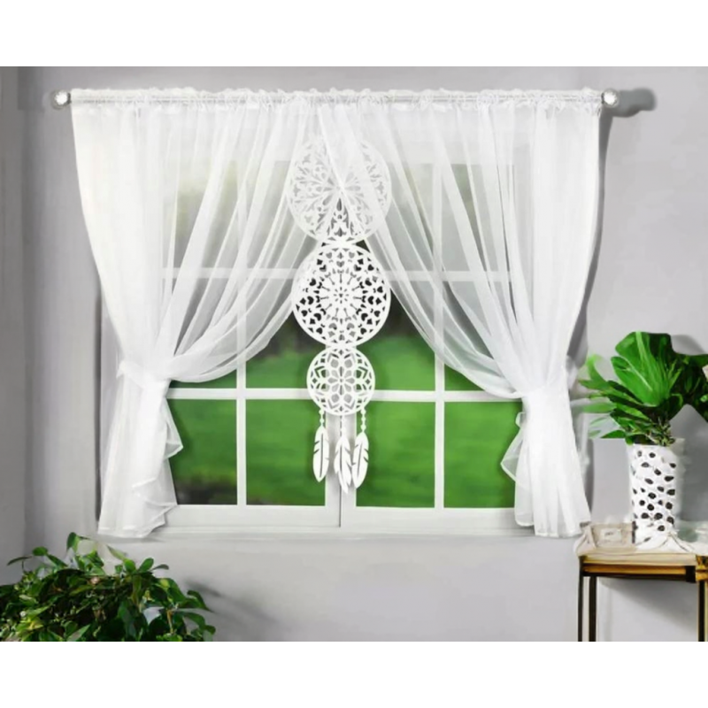 Sada: bílá voálová záclona 400x150 cm a dekorativní panel s motivem lapače snů