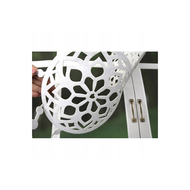 Bílá barva záclony dodává interiéru svěžest a optickou lehkost a zároveň je natolik univerzální, že ji lze sladit s většinou interiérových stylů. Dekorační panel s motivem lapače snů přináší osobitý prvek a stává se módním akcentem v místnosti. Spojení hladkého, měkkého voálu a výrazného panelu vytváří ucelenou, vkusnou kompozici, která dobře funguje v moderních i klasičtějších prostorech. Sada spojuje praktičnost s dekorativností a podtrhuje charakter okna bez vizuálního přetížení místnosti.