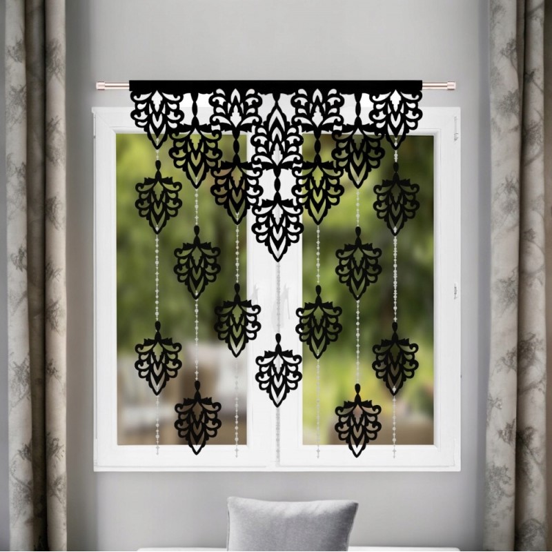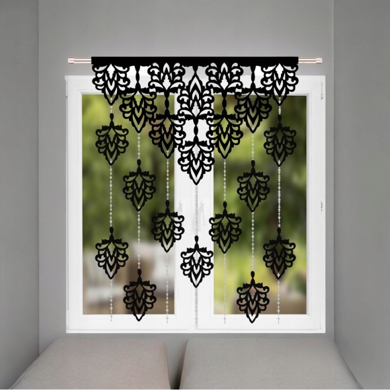 Okenní panel 100x150 cm černý s ažurovými listy a korálky