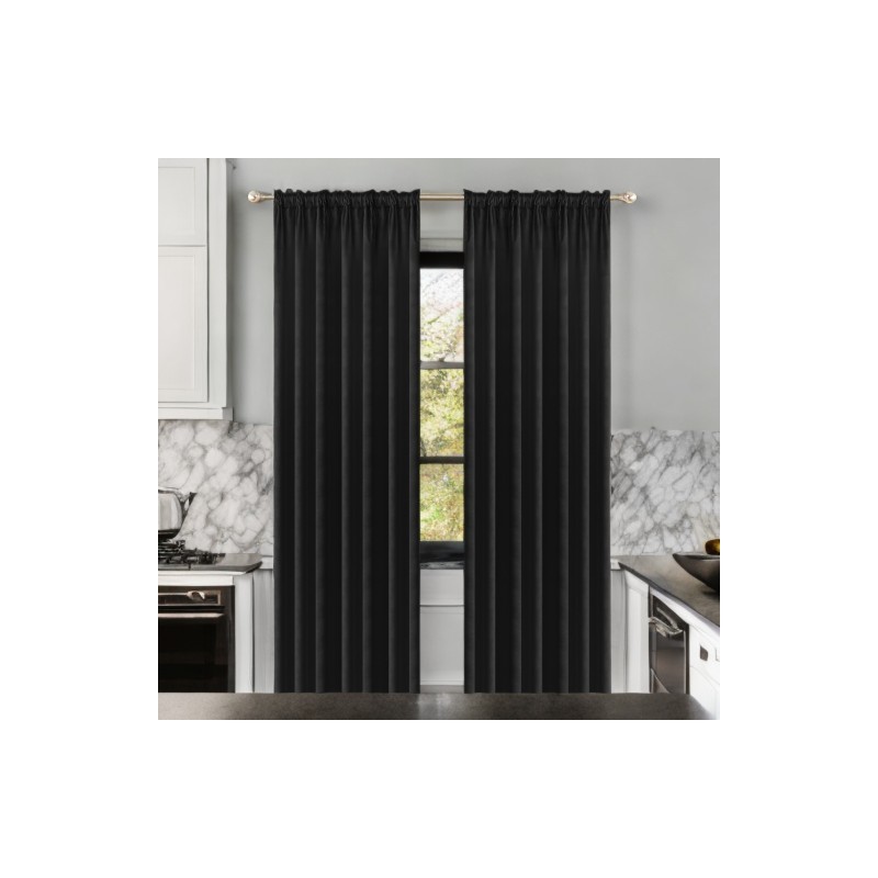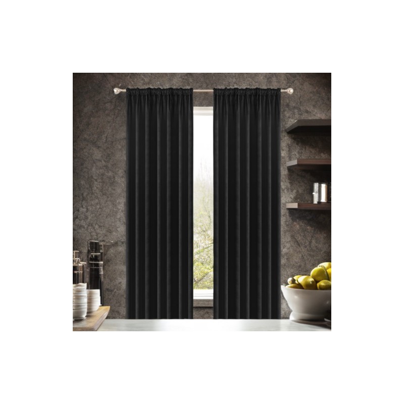 Glamour sametový závěs z černého veluru 140x250 cm, zatemňující, z měkkého veluru 180 g/m?, na řasicí pásce pro zavěšení na žabky, tunel nebo tyčovou garnýž.