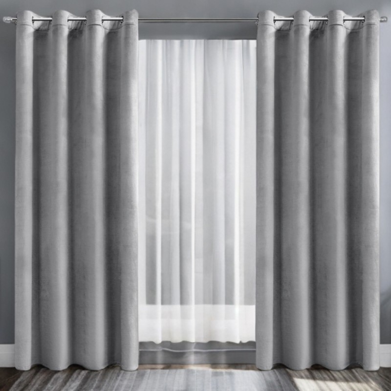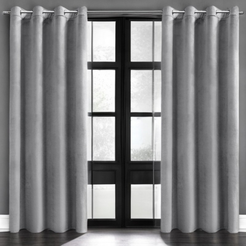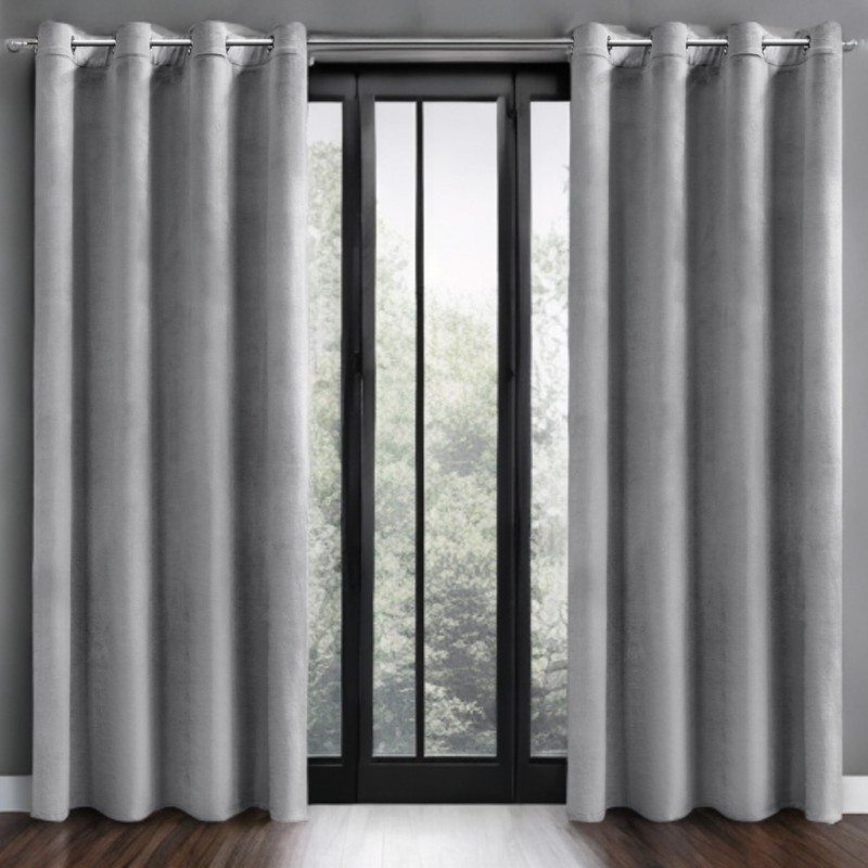 Velurový závěs ve stylu glamour ve světle šedé barvě 140 x 250 cm s průchodkami, který zatemní interiér, zajistí soukromí a dodá místnosti útulný, luxusní charakter.