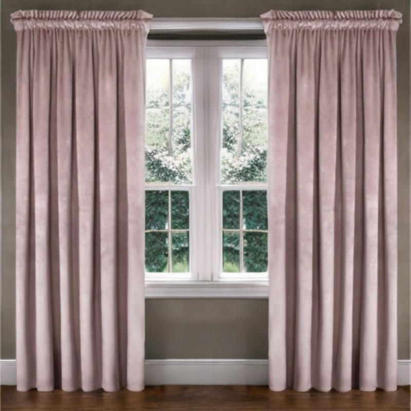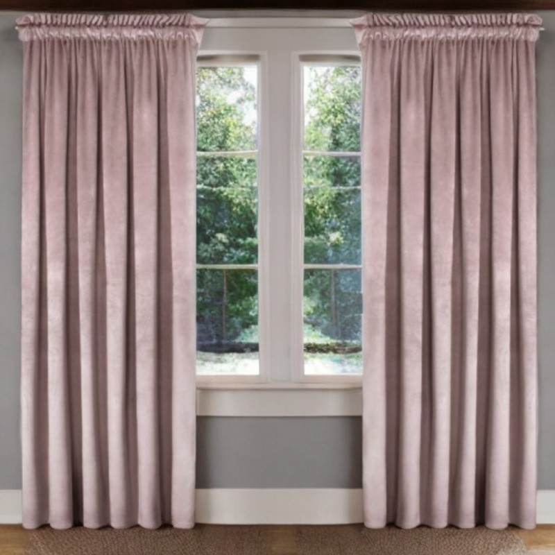 Stylový zatemňující velurový závěs v pudrově růžové barvě 140 x 250 cm s řasicí páskou, který dodá interiéru eleganci, soukromí a výraznou dekoraci okna.