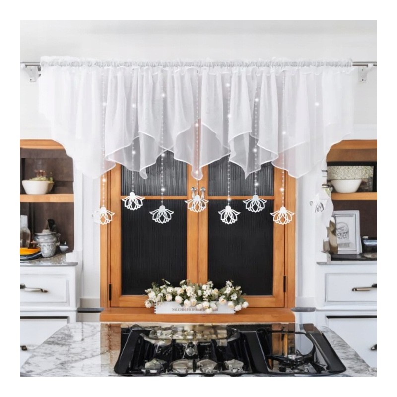 Tato krátká záclona spojuje výrazný dekorativní efekt s praktickým využitím. Jemně zakryje okno, zajistí soukromí a zároveň propouští přirozené světlo, takže místnost zůstává světlá a příjemná. Subtilní vzhled, úhledné zakončení a plstěné závěsky dodávají interiéru harmonii a styl. Vzhledem k výrobnímu procesu je dodací lhůta delší.