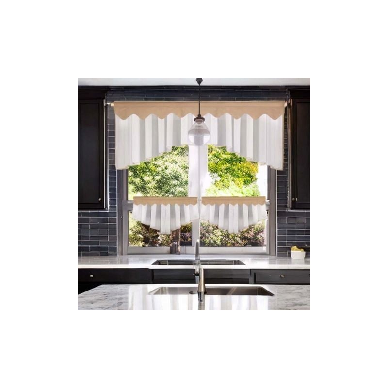 Sada: kuchyňská záclona z voálu 200x80 cm + krátké záclonky 90x50 cm