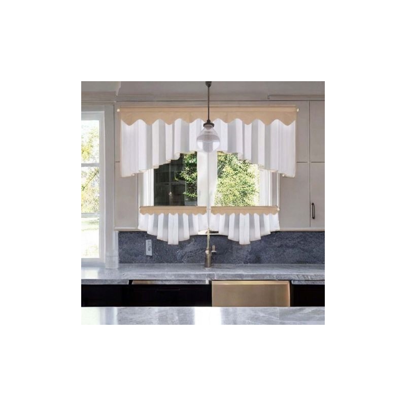 Tato voálová sada je rychlý způsob, jak dodat kuchyňskému oknu upravený a elegantní vzhled. Přináší teplý akcent a zvýrazní aranžmá, zatímco lehká tkanina jemně propouští světlo, vytváří útulnou atmosféru a zároveň podporuje soukromí. Kombinace vitrážek a delší záclony působí sladěně a esteticky. Pečlivé zpracování a decentní, ale výraznější vzor umožňují snadné začlenění do klasických i moderních interiérů. Vzhledem k výrobnímu procesu je dodací lhůta delší.