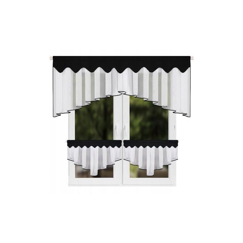 Sada: kuchyňská záclona z voálu 200x80 cm + krátké záclonky 90x50 cm, černé lemování