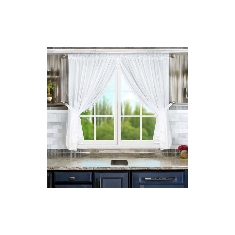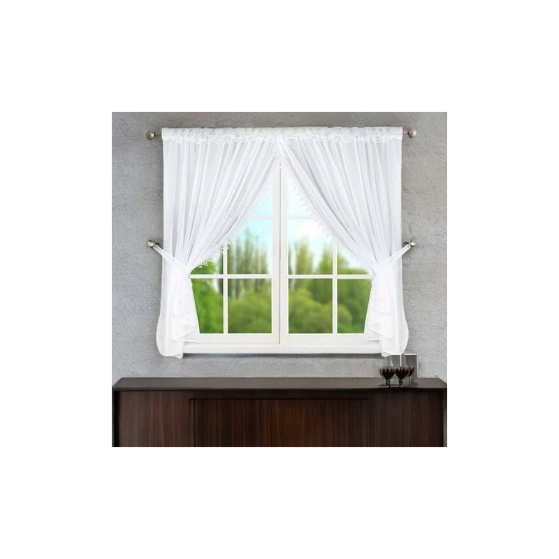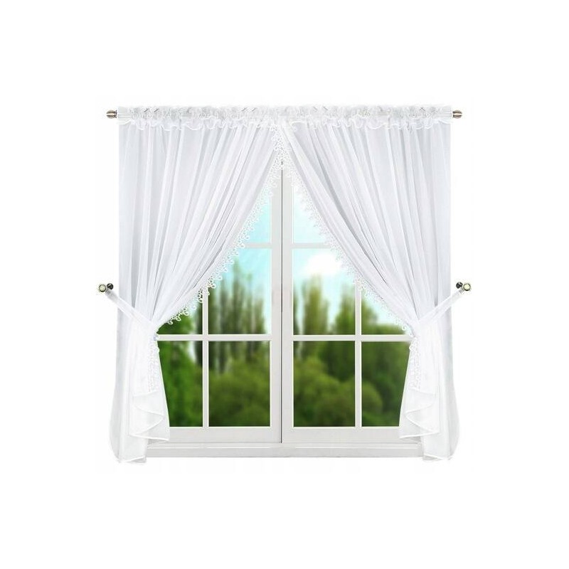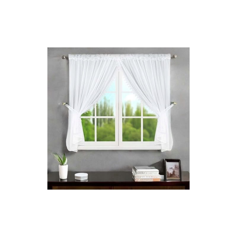 Bílý voál v kombinaci s dekorativní krajkou vytváří lehkou a elegantní oprawu okna. Tento charakter dekorace podtrhne styl interiéru a vnese harmonický, útulný akcent.