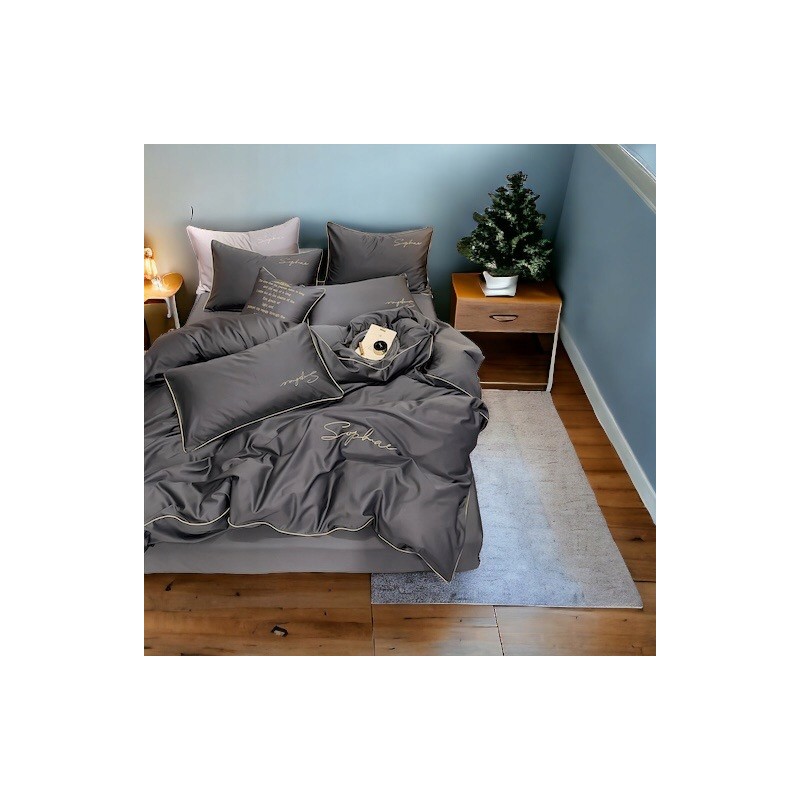 Tmavě šedá barva působí moderně a nadčasově, výšivka a lemovka pak přidávají elegantní, prémiový detail. Sada se snadno kombinuje s různými interiéry a dodá posteli upravený vzhled.