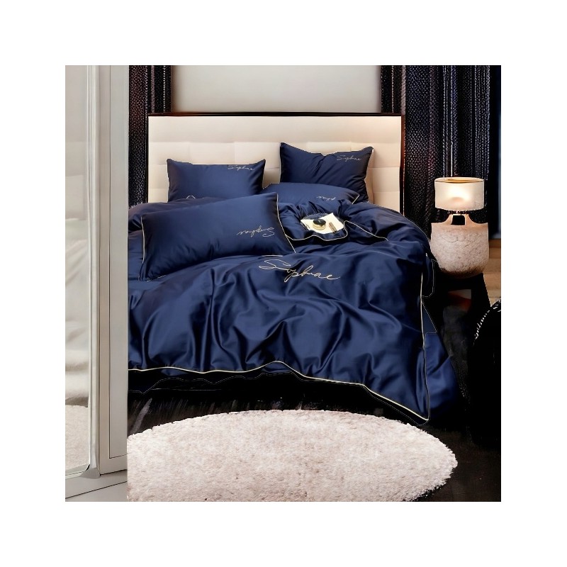Luxusní sada povlečení z mikrovlákna 200x220 cm v tmavě modré barvě, zdobená elegantní výšivkou a lemováním. Měkká, prodyšná a hypoalergenní, snadná na údržbu, se zapínáním na zip – pohodlí a styl každý den.