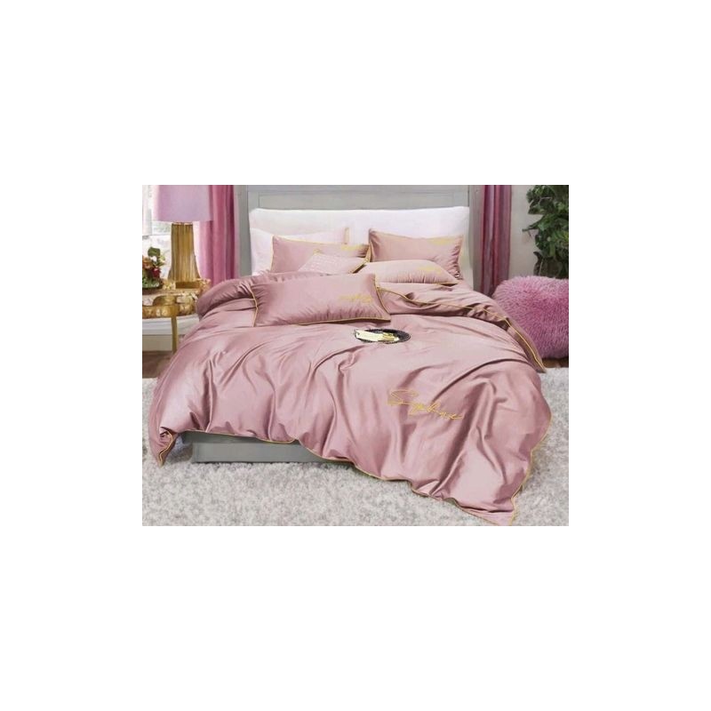 Luxusní sada povlečení z mikrovlákna 200x220 cm v růžové barvě, zdobená elegantní výšivkou a lemováním. Měkká, prodyšná a hypoalergenní, snadná na údržbu, se zapínáním na zip – pohodlí a styl každý den.