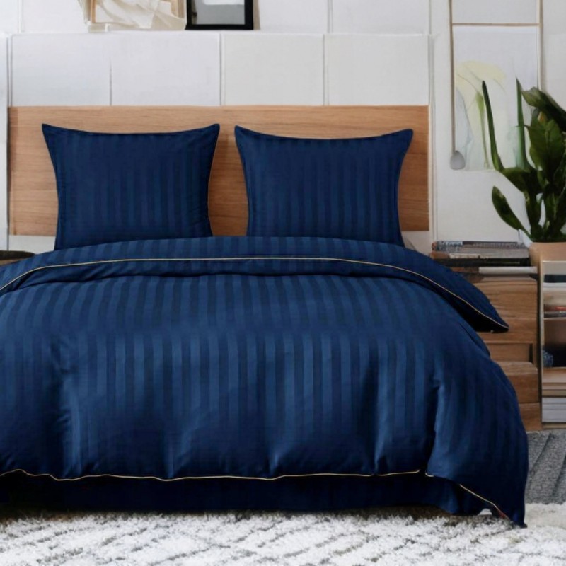 Stylová sada povlečení z kvalitního damašku 160x200 cm v hluboké námořnické modři se subtilním leskem a reliéfním vzorem. Měkká, prodyšná, odolná a praktická díky zapínání na zip. Vzhledem k výrobnímu procesu je dodací lhůta delší.