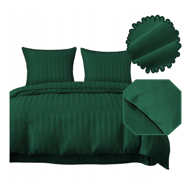 Stylová sada povlečení z kvalitního damašku 160x200 cm v zelené barvě se subtilním leskem a reliéfním vzorem. Měkká, prodyšná, odolná a praktická díky zapínání na zip. Vzhledem k výrobnímu procesu je dodací lhůta delší.
