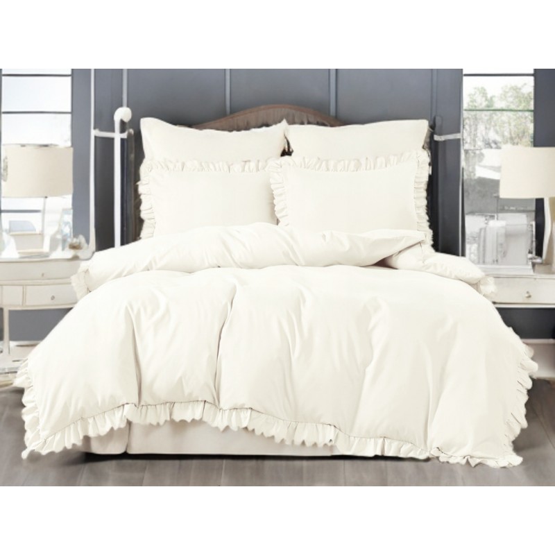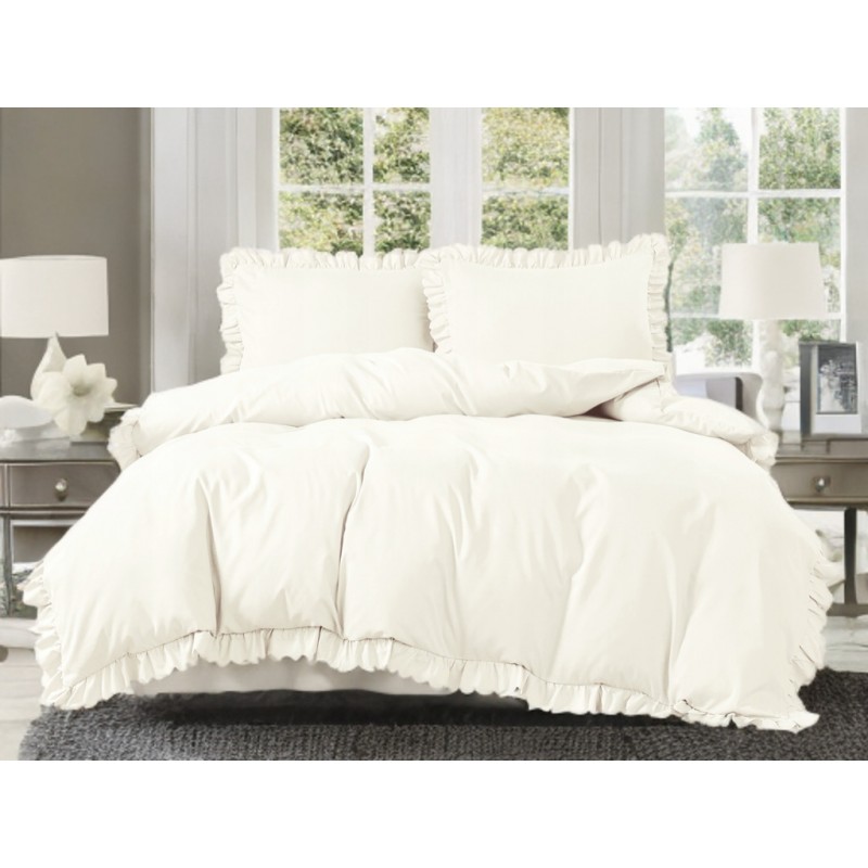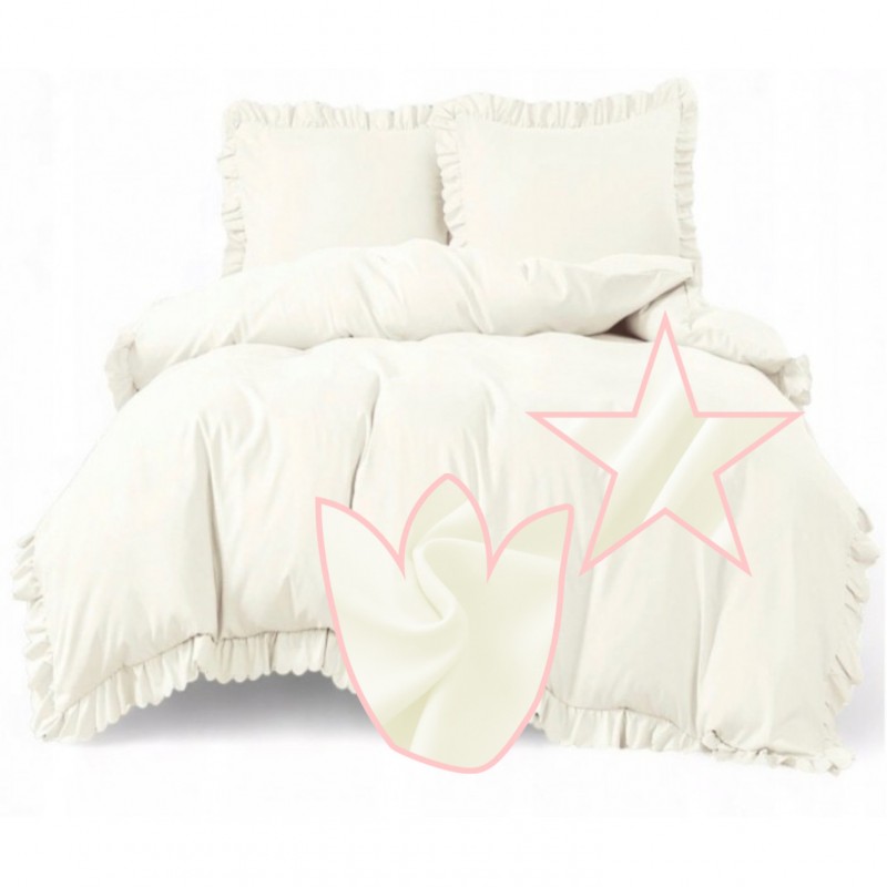 3dílný komplet ložního povlečení s volány, smetanová barva, 160x200 cm