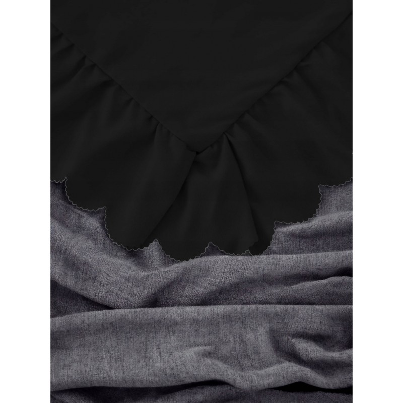 Módní sada povlečení s volánky 160x200 cm v černé barvě. Měkké mikrovlákno je příjemné na dotek, prodyšné, nemačká se a rychle schne, a zapínání na zip usnadňuje každodenní převlékání. Vzhledem k výrobnímu procesu je dodací lhůta delší.