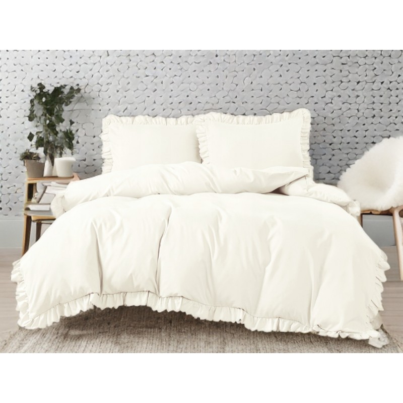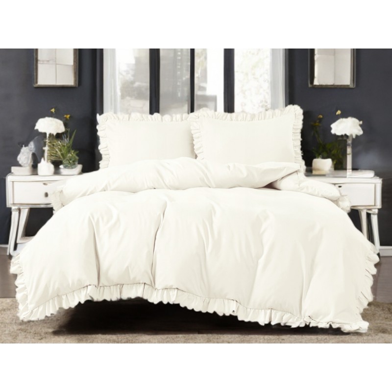 3dílný komplet ložního povlečení s volány, smetanová barva, 200x220 cm