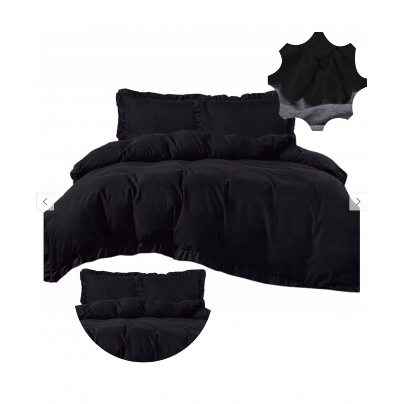 3dílný komplet ložního povlečení s volány, černá barva, 200x220 cm