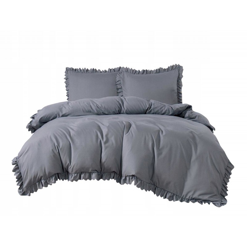 3dílný komplet ložního povlečení s volány, tmavě šedá barva, 200x220 cm