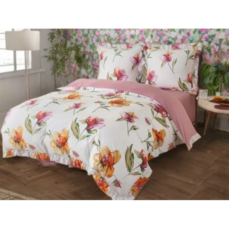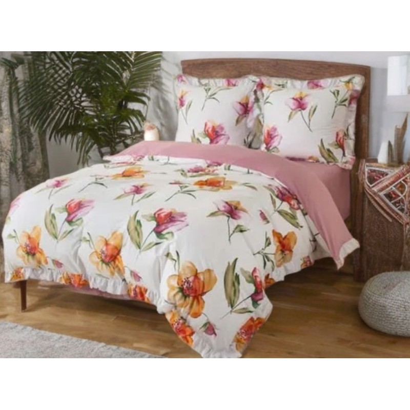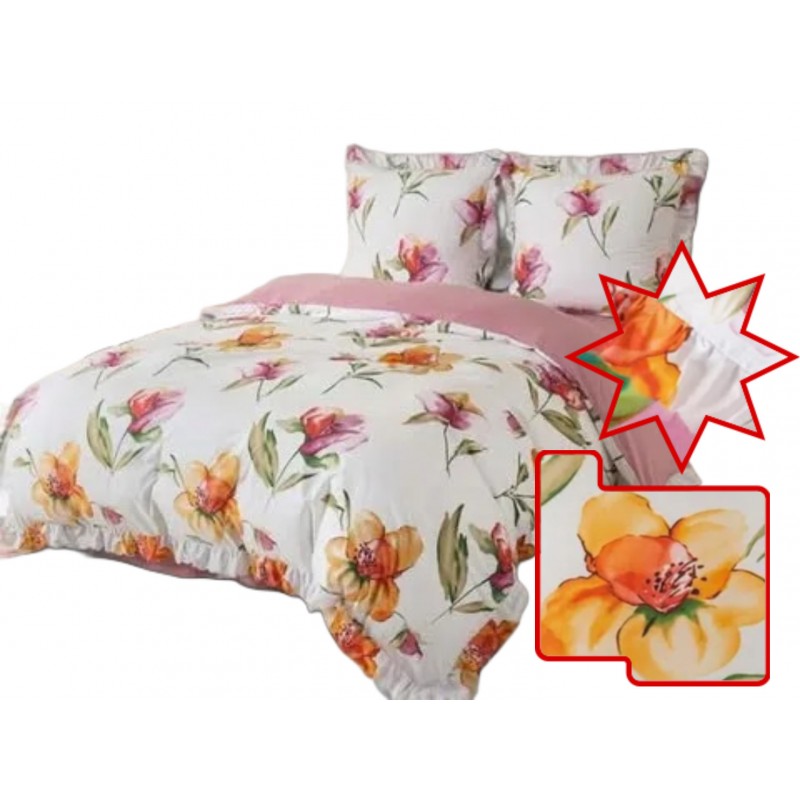 3dílný komplet ložního povlečení s volány, květinový vzor, 200x220 cm