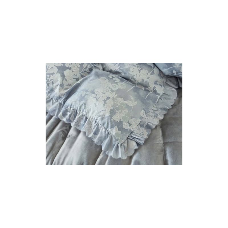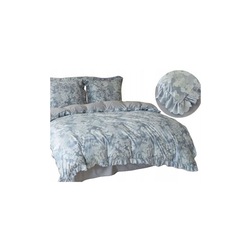 3dílný komplet ložního povlečení s volány, šedomodrý s květinami, 200x220 cm
