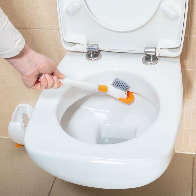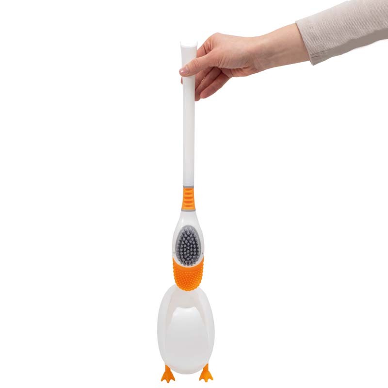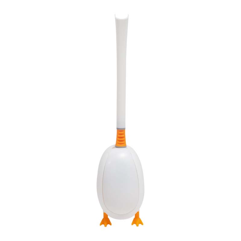 Pružný silikonový "zobák" kachny usnadňuje vyčištění všech zákoutí záchodové mísy.