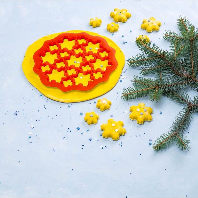 Jedním pohybem vykrojíte z těsta 19 sněhových vloček různých velikostí.