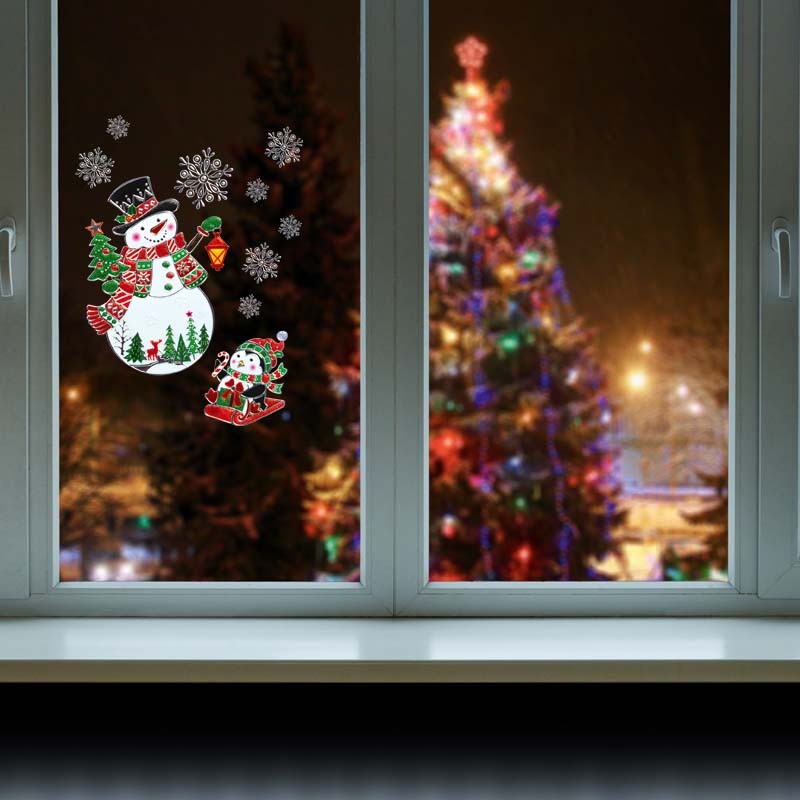 Nálepky na okna Sněhulák a 3D sněhové vločky